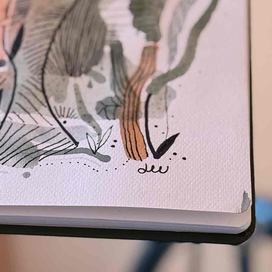 Jag kommer att berätta om det i samband med utmaningar och onlineträffar. Men det är bra att ha akvarellpapper, akvarellfärg i någon form, acrylic ink, svarta fineliners, färgpennor mm